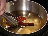 In a small sauce pot add water and cinnamon and bring to boil. Simmer for 10 minutes, and strain out cinnamon sticks. Bring water back to a boil, add sugar and stir until sugar is dissolved.