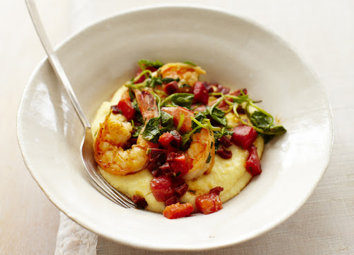 Spoon the polenta onto serving dishes. Top with the shrimp and chorizo mixture and serve.