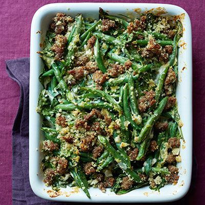 Crisped, succulent Italian sausage adds loads of flavor to this reinvented version of a holiday staple.