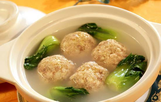 Dust the meatballs with cornstarch. Heat a wok over high heat and add 1/2" oil and heat until very hot. Cook meatballs in batches until browned all over then drain well. Add to the clay pot. Drain the oil from the wok and add the chicken broth and heat until boiling. Pour over meatballs and very slowly bring to a boil and simmer gently, partially covered, for 1 1/2 hours, or until very tender.