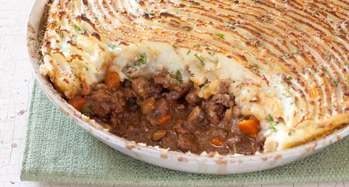 4. Adjust oven rack 5 inches from broiler element and heat broiler. Place mashed potatoes in large zipper-lock bag and snip off 1 corner to create 1-inch opening. Pipe potatoes in even layer over filling, making sure to cover entire surface. Smooth potatoes with back of spoon, then use tines of fork to make ridges over surface. Place skillet on rimmed baking sheet and broil until potatoes are golden brown and crusty and filling is bubbly, 10 to 15 minutes. Let cool for 10 minutes before serving.