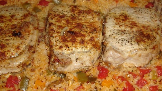 "This is my favorite pork chop recipe. The rice is both colorful and flavorful, and the chops are so tender that they fall off the bone."