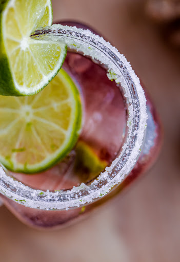 Moisten the rim of the glass with a used wedge of lime, and coat the rim with the sugar.