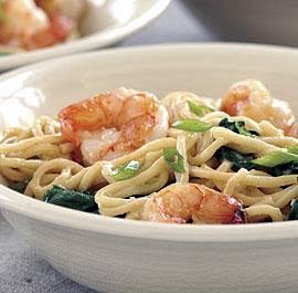 Stir-Fried Shrimp with Spinach & Peanut Noodles