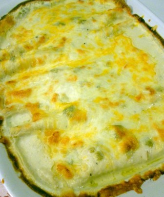 Pour the creamy sauce over the rolled up tortillas evenly.