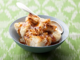 7. To serve, spoon the bread pudding into individual plates or bowls and top with a generous helping of caramel rum sauce.