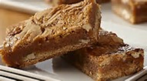 Preheat oven to 350°F. Mix flour, baking powder, cinnamon and salt in medium bowl. Set aside. Mix brown sugar, butter, eggs, vanilla and pecans in large bowl until well blended. Add flour mixture; mix well. Reserve 1 cup of the batter. Spread remaining batter into lightly greased foil-lined 13x9-inch baking pan. Bake 15 minutes or until firm.