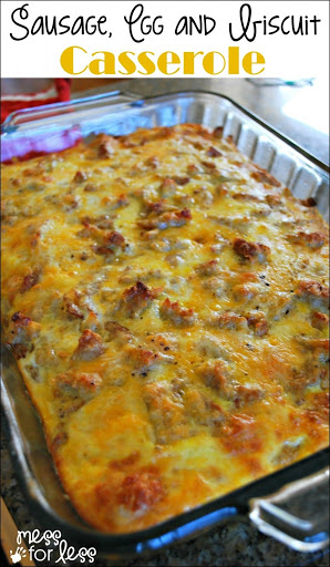 Beat 6 eggs with milk and pour over the biscuits and sausage.