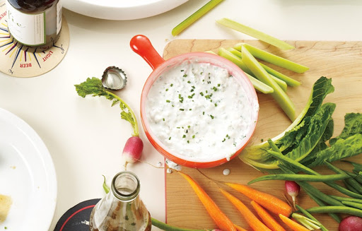 Whisk buttermilk, sour cream, and chives in a medium bowl until smooth. Stir in blue cheese. Drain pickled onion and stir into dip. Season with salt and pepper. DO AHEAD: Can be made 3 days ahead. Cover dip and refrigerate