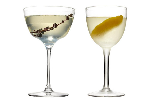 Dip a thyme sprig in absinthe, light sprig on fire and invert a coupe approximately 6 inches over flame. (You want to capture the smoke but not heat the glass.)