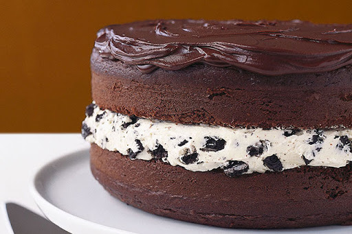 Place 1 cake layer on plate, spread with cream cheese mixture. Top with remaining cake layer. Spread top with chocolate glaze; let stand 10 min. or until firm. Keep refrigerated.