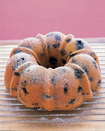 3.In a bowl, toss blueberries and zest with remaining teaspoon flour; gently fold into batter. Coat a 12-cup nonstick Bundt pan with cooking spray. Spread batter in prepared pan.