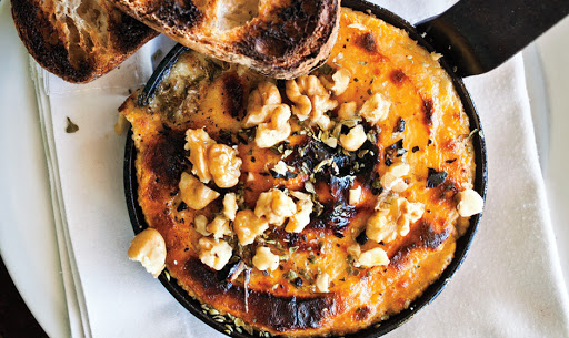 Preheat broiler to high. Put cheese in a 5"–6" ovenproof skillet. Broil cheese until browned and bubbling, 9–10 minutes. Transfer hot skillet to a plate lined with a napkin or kitchen towel. Season with oregano; garnish with walnuts. Serve hot with toast.