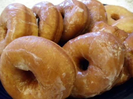 DRAIN on absorbent paper. While still warm, glaze with glaze (ingredients above) or dust each doughnut with granulated or confectioners sugar.