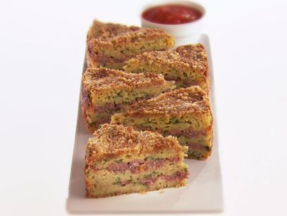 Remove the sides of the pan and cut the pasta into wedges. Serve with warm marinara sauce.