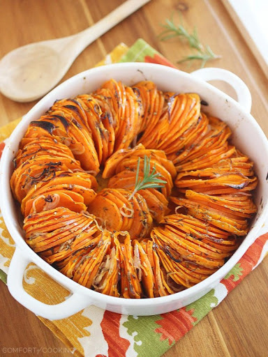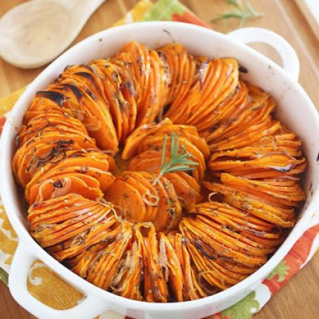 Not the traditional sweet potato recipe with tons of brown sugar and butter. The rosemary and shallots really add a nice flavor.