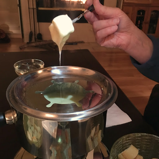 Over medium heat, add the wine and lemon juice and bring to a gentle simmer. Gradually stir the cheese into the simmering liquid. Melting the cheese gradually encourages a smooth fondue. Once smooth, stir in cherry brandy, mustard and nutmeg.