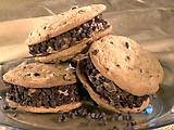Soften ice cream on the counter for 10 minutes prior to making sandwiches. Remove cookies from freezer, place a scoop of ice cream on the backside of 1 cookie. Sandwich with another cookie and carefully press together until ice cream reaches the edge of the cookies. Roll edges in remaining chocolate chips. Freeze for 10 minutes, then serve.