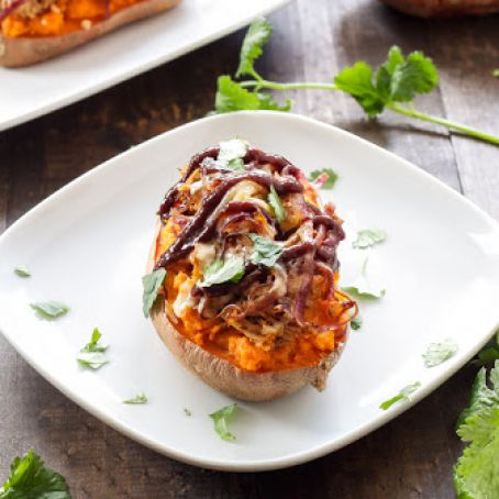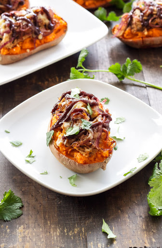 Remove the potatoes from the oven and top with more BBQ sauce and cilantro if desired.