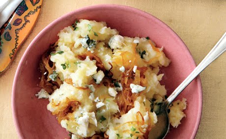 MASHED POTS & PARSNIPS w/ONIONS & BLUE CHEESE