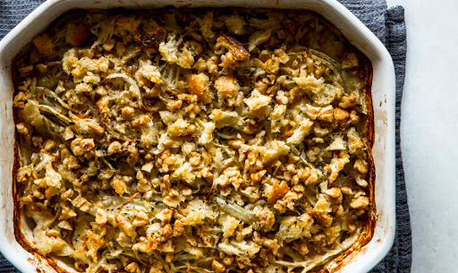 Scatter breadcrumb mixture evenly over gratin and bake until breadcrumbs and walnuts are deep golden brown and fennel is tender, 12–15 minutes. Let cool slightly before serving.