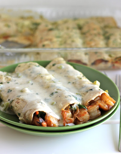 Roasted Shrimp Enchiladas with Jalapeño Cream Sauce - Damn Delicious