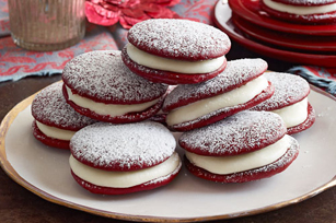 Red velvet whoopie pies with marshmallow filling are like heaven! This recipe is easy to make and always a crowd pleaser!