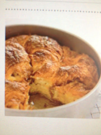 Set the cake pan in a large roasting pan and carefully pour enough hot water into the roasting pan to reach halfway up the sides of the cake pan. Bake until the croissants are golden and the custard is set (a toothpick inserted in the center of the French toast should come out clean), about 45 minutes. Remove the French toast from the hot-water bath, cut into wedges and serve warm.