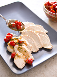 • To ensure that the chicken cooks through, don’t use breasts that weigh more than 8 ounces each. If desired, serve the chicken with one of our sauces (see related content) or in a salad or sandwiches.