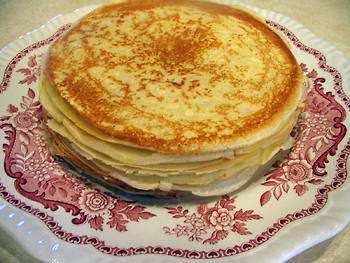 Method for Making Crêpes: The first crêepe is a trial one to test out the consistency of your batter, the exact amount you need for the pan, and the heat. Rub the skillet with the rind or brush it lightly with oil. Set over moderately high heat until the pan is just beginning to smoke. Immediately remove from heat and, holding handle of pan in your right hand, pour with your left hand a scant ¼ cup of batter into the middle of the pan. Quickly tilt the pan in all directions to run the batter all over the bottom of the pan in a thin film. (Pour any batter that does not adhere to the pan back into your bowl; judge the amount for your next crêpe accordingly.) This whole operation takes but 2 or 3 seconds. Return the pan to heat for 60 to 80 seconds. Then jerk and toss pan sharply back and forth and up and down to loosen the crêpe. Lift its edges with a spatula and if the under side is a nice light brown, the crêpe is ready for turning. Turn the crêpe by using 2 spatulas; or grasp the edges nearest you in your fingers and sweep it up toward you and over again into the pan in a reverse circle; or toss it over by a flip of the pan. Brown lightly for about ½ minute on the other side. This second side is rarely more than a spotty brown, and is always kept as the underneath or non public aspect of the crêpe. As they are done, slide the crêpes onto a rack and let cool several minutes before stacking on a plate. Grease the skillet again, heat to just smoking, and proceed with the rest of the crêpes. Crêpes may be kept warm by covering them with a dish and setting them over simmering water or in a slow oven. Or they may be made several hours in advance and reheated when needed. (Crêpes freeze perfectly.) As soon as you are used to the procedure, you can keep 2 pans going at once, and make 24 crêpes in less than half an hour.