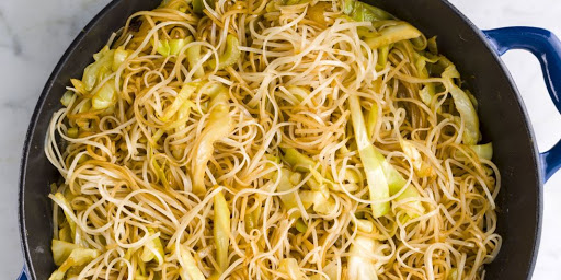 Add noodles to skillet and soy sauce and stir until fully coated.