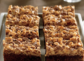 3 Bake 20 minutes or until brownie begins to pull away from sides of pan. Remove from oven; sprinkle with toffee bits. Cover tightly with foil. Cool completely in pan on wire rack. Remove foil; cut into squares. 16 brownies.