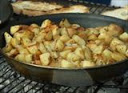 Add the rest of the oil to the skillet. Add the potatoes and press down with spatula. Cook, without moving, until underside of potatoes is brown, 5 to 7 minutes. Turn potatoes, pack down again, and continue to cook until well browned and crisp, 5 to 7 minutes. Reduce heat to medium-low and continue cooking, stirring potatoes every few minutes, until crusty and golden on all sides, 9 to 12 minutes.
