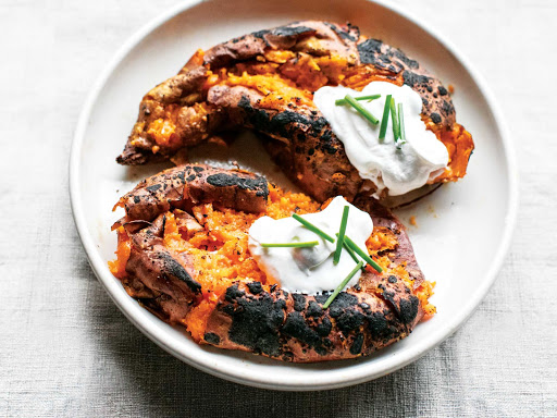 Slow Roasted Sweet Potatoes with Garlic Labneh