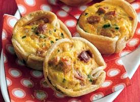 4. Spoon 1 heaping tablespoon cheese mixture into each crust-lined cup. Top each with about 1 tablespoon egg mixture; divide any remaining egg mixture between cups.
