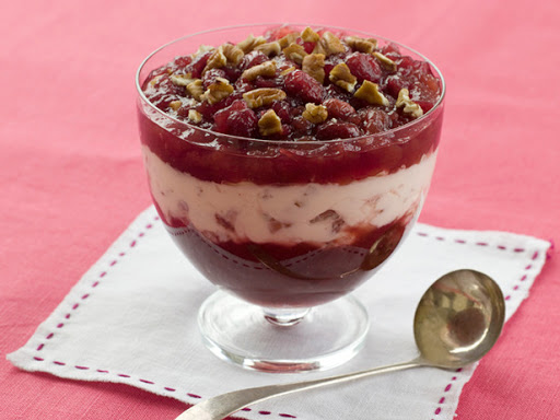 Spread about half of the mashed cranberry sauce in the bottom of a bowl or parfait dish. Spread the cream cheese mixture on top of the cranberry sauce, then gently cover with the remaining cranberry sauce. Top with more pecans, if desired.