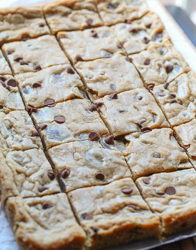 Spread the dough into the prepared pan and bake for 30 minutes or until the edges are set and litghly golden and the center appears slightly underbaked.
