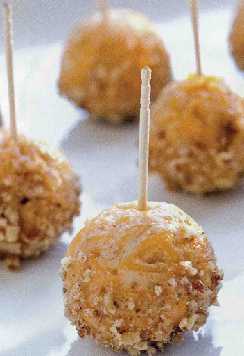 1. In a large mixing bowl, combine cream cheese, cheddar cheese, and soup mix. Roll mixture into bite-size balls. Insert a wooden pick in each ball. Roll the bottom half of the cheese balls in pecans. Chill cheese balls for at least 30 minutes or until ready to serve.