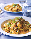 Raise the heat to moderate and stir in the shrimp. Cover and cook for 2 minutes. Remove the pan from the heat and let stand, covered, until the rice and shrimp are just done, about 5 minutes longer. Remove the bay leaf. Stir in the scallions.