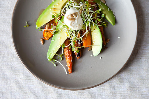 We loved the technique of roasting some of the citrus before adding it to the tart-sweet dressing, and the smattering of crunchy sunflower and sesame seeds against a backdrop of sweet, yielding carrot and silky avocado makes for a textural combination that keeps you coming back for another bite.