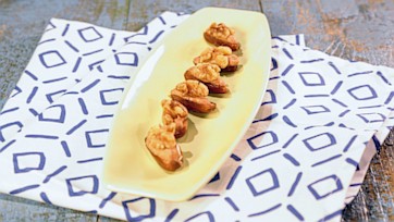 For the Soaked Walnuts: in a large bowl, add the walnuts and 3 orange peels. Pour room temperature water over the walnuts to cover. Add salt and stir to combine and dissolve. Let soak for an hour.