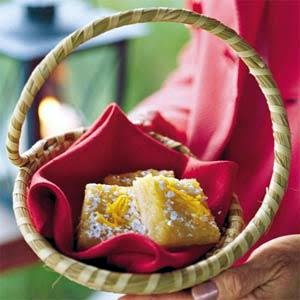 Bake at 350° for 28 to 30 minutes or until set. Cool in pan on wire rack. Sprinkle evenly with 1 tablespoon powdered sugar, and cut into bars. Garnish, if desired.
