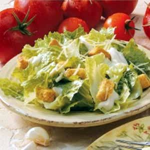 In a small bowl, whisk together the first seven ingredients. In a salad bowl, combine the romaine, croutons and cheese. Drizzle with dressing; toss to coat.