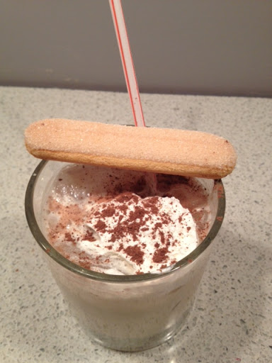 Submitted by Shannon Lebel. This is a drink version of the Italian desert, Tiramisu. The desert is made of ladyfingers dipped in coffee, layered with mascarpone cheese.