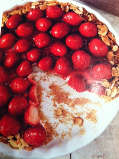 Combine the remaining 4 cups strawberries and lime juice; toss to coat. Arrange berries, bottoms up, in a circular pattern over filling. Spoon half of glaze evenly over berries (reserve remaining glaze for another use). Sprinkle nuts around edge (optional). Cover and chill 3 hours.