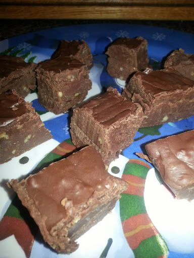 Stir until melted. Add the nuts (if desired) and the almond or vanilla extract. Pour into prepared pan.Refrigerate until firm and cut into squares. Makes about 2-3/4 pounds.