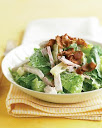 4. At dinnertime: In a large bowl, combine lettuce, meats, and cheese. Add dressing, and toss to coat. Serve salad topped with crumbled bacon.