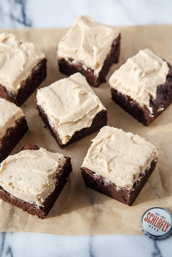 Once the brownies are cool, make the frosting: beat together the softened butter and powdered sugar until combined.