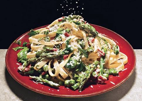 Fettuccine with Peas, Asparagus, and Pancetta
