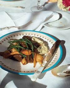 Blanch beans until bright green and still crisp, then drain. Serve stew over mashed potatoes, and scatter beans atop each serving. Sprinkle with chervil, and serve immediately.